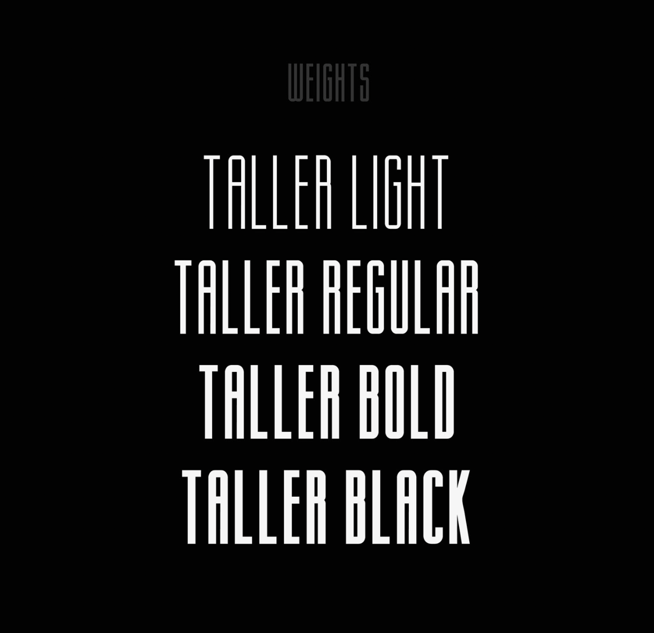 Taller is a condensed display font, a project I did back in 2020 as part of a typography module at university.